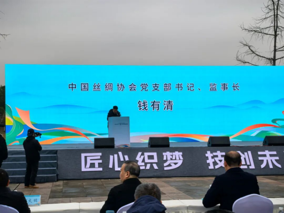 中國(guó)絲綢協(xié)會(huì)黨支部書(shū)記、監(jiān)事長(zhǎng)錢(qián)有清致辭并宣布開(kāi)幕