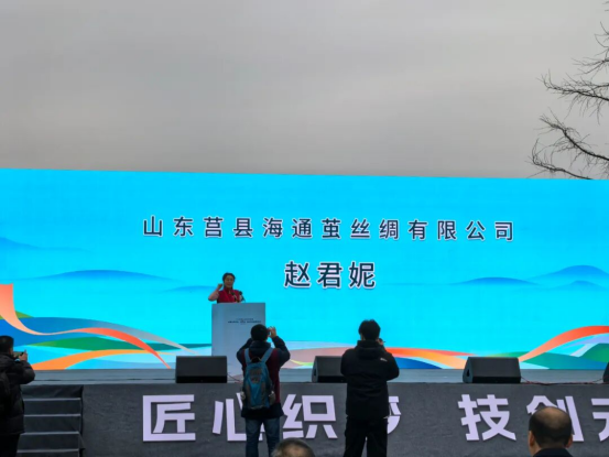 山東莒縣海通繭絲綢有限公司趙君妮代表參賽選手宣誓,將嚴(yán)格遵守比賽紀(jì)律規(guī)則,服從裁判安排,秉持行業(yè)優(yōu)良作風(fēng),在賽場(chǎng)上展現(xiàn)過(guò)硬本領(lǐng),綻放選手風(fēng)采。