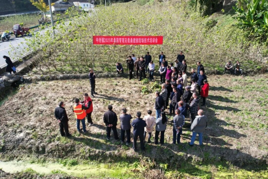 技術(shù)下沉,培訓(xùn)賦能添底氣。為確保技術(shù)標(biāo)準(zhǔn)精準(zhǔn)落地,中池鎮(zhèn)開(kāi)展栽桑建園與桑園管理專(zhuān)項(xiàng)培訓(xùn),培訓(xùn)采取分片區(qū)集中現(xiàn)場(chǎng)授課模式,在全鎮(zhèn)設(shè)立軍民村、民主村、城鎮(zhèn)社區(qū)、青泥澗村四個(gè)現(xiàn)場(chǎng)教學(xué)點(diǎn),將課堂搬到田間地頭,緊密結(jié)合蠶農(nóng)實(shí)際生產(chǎn)需求。培訓(xùn)內(nèi)容聚焦三大核心技術(shù):一是桑園藥物封園技術(shù),指導(dǎo)蠶農(nóng)在秋季末批蠶飼養(yǎng)后及時(shí)實(shí)施藥物清園,有效降低越冬病蟲(chóng)基數(shù),為來(lái)年桑葉優(yōu)質(zhì)高產(chǎn)筑牢根基;二是冬(春)夏輪伐修剪技術(shù),通過(guò)科學(xué)調(diào)節(jié)桑樹(shù)生長(zhǎng)周期,實(shí)現(xiàn)桑葉產(chǎn)量與養(yǎng)蠶季節(jié)的優(yōu)化匹配;三是“9215”栽桑建園技術(shù),以“寬行9尺、窄行2尺、株距1.5尺”的標(biāo)準(zhǔn)化配置,推動(dòng)桑糧協(xié)同發(fā)展,為機(jī)械化作業(yè)創(chuàng)造條件。截至12月底,全鎮(zhèn)累計(jì)開(kāi)展蠶桑類(lèi)專(zhuān)題培訓(xùn)16場(chǎng)次培訓(xùn)500余人次。