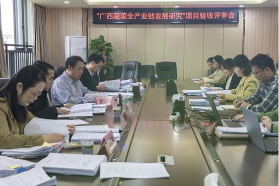 12月23日,自治區(qū)農(nóng)業(yè)農(nóng)村廳組織專家對(duì)廣西蠶業(yè)技術(shù)推廣站承擔(dān)的廣西農(nóng)業(yè)科技自籌經(jīng)費(fèi)項(xiàng)目“蔬菜綠色高質(zhì)高效技術(shù)集成與推廣應(yīng)用”“蔬菜設(shè)施生態(tài)環(huán)境搭建與高效栽培技術(shù)創(chuàng)新示范”“廣西蔬菜全產(chǎn)業(yè)鏈發(fā)展研究”“桑黃菌液體培養(yǎng)關(guān)鍵技術(shù)及應(yīng)用研究”“蠶蛹脫腥脫臭關(guān)鍵技術(shù)研究”5個(gè)項(xiàng)目進(jìn)行會(huì)議驗(yàn)收。