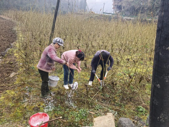 冬日的石泉縣高興村桑園中,寒意雖濃,卻難掩農(nóng)戶們辛勤勞作的熱忱。眾人分工明確、配合默契,有的手持修枝剪,精準(zhǔn)剪除病弱枝與過密枝,優(yōu)化桑樹樹形;有的提著石灰桶,手持刷子,細(xì)致地為桑樹主干均勻刷上石灰水;還有的翻耕土壤、清除雜草,從源頭減少病蟲害滋生。這些忙碌的身影交織,共同繪就了一幅生動(dòng)的冬日田園勞作圖景。