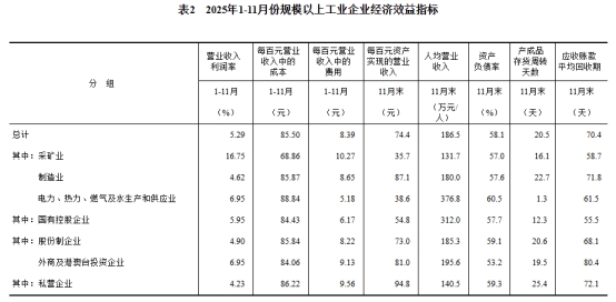1—11月份,規(guī)模以上工業(yè)企業(yè)實(shí)現(xiàn)營(yíng)業(yè)收入125.34萬(wàn)億元,同比增長(zhǎng)1.6%;發(fā)生營(yíng)業(yè)成本107.17萬(wàn)億元,增長(zhǎng)1.8%;營(yíng)業(yè)收入利潤(rùn)率為5.29%,同比下降0.08個(gè)百分點(diǎn)。