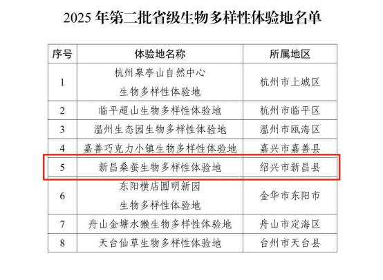 絲企新聞丨新昌縣達利絲綢桑蠶生物多樣性體驗地成功入選2025年第二批浙江省級生物多樣性體驗地