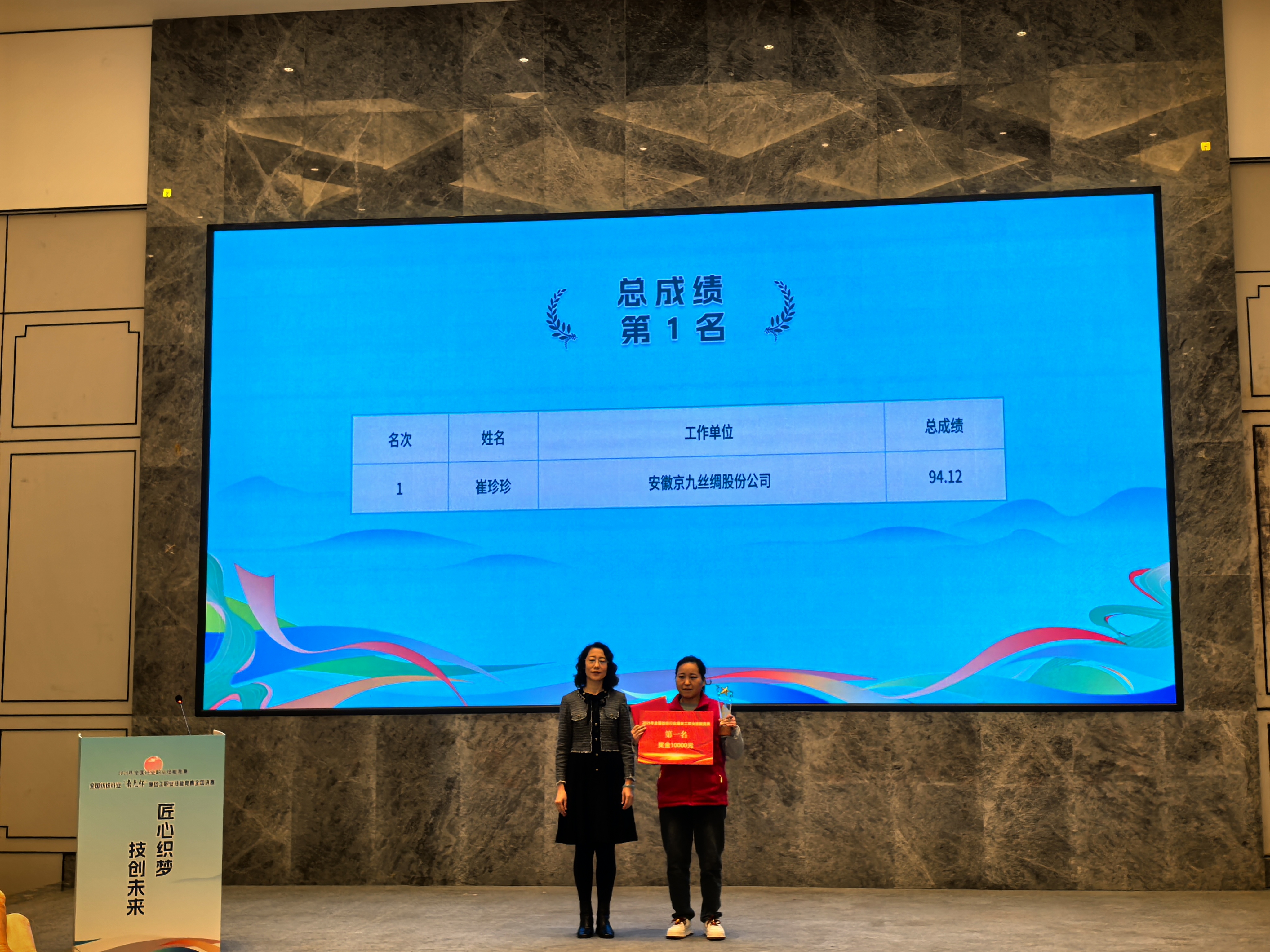 捷報(bào)傳來,榮耀綻放!近日,2025年全國行業(yè)職業(yè)技能競賽——全國紡織行業(yè)“南充杯”繅絲工職業(yè)技能競賽全國決賽在四川省儀隴縣圓滿落幕。安徽京九絲綢股份公司2名選手不負(fù)眾望,在全國頂尖工匠的巔峰對決中勇奪佳績,崔珍珍斬獲總成績?nèi)珖谝幻?,許娟娟摘得穿瓷眼單項(xiàng)全國第一名,用精湛技藝為京九絲綢、為阜陽贏得至高榮譽(yù)!