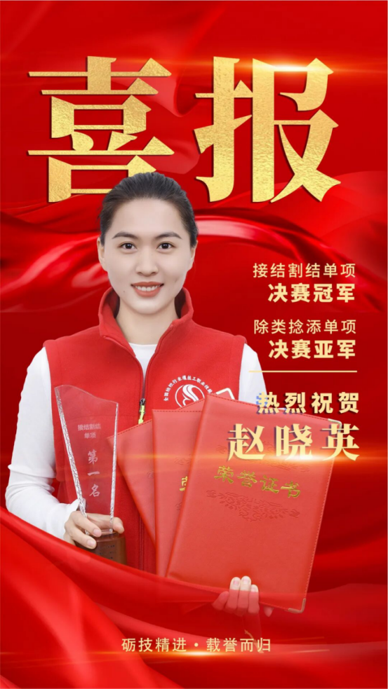 趙曉英:榮獲“接結(jié)割結(jié)”冠軍和“除類捻添”亞軍