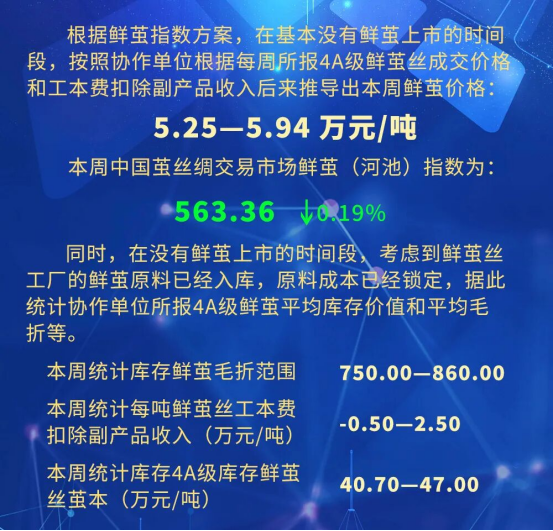 高品質(zhì)生絲電子指數(shù)延續(xù)弱調(diào)節(jié)奏,本周根據(jù)協(xié)作單位報(bào)送成交數(shù)據(jù)計(jì)算,仍以小幅收跌落幕。