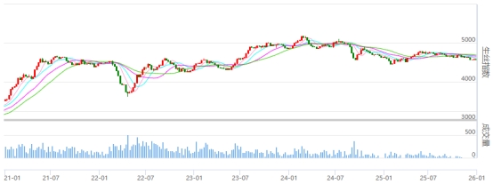 今日(周日)仍處于交易時(shí)段,生絲電子盤面各遠(yuǎn)近月合約價(jià)格延續(xù)小幅下調(diào)態(tài)勢(shì)。剔除元旦三日假期影響,本周生絲電子指數(shù)歷經(jīng)四個(gè)交易日震蕩調(diào)整,累計(jì)下跌0.25%,最終報(bào)收于4577.98點(diǎn)。