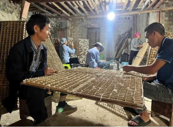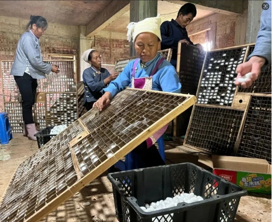 通過黨建聯(lián)建平臺,兩地整合資源開展“實訓聯(lián)學”,采取“院壩課堂+田間課堂+生產(chǎn)基地”模式,組織農(nóng)技專家、種植能手深入一線傳授技術,改變過去“單打獨斗”的局面。如今,田房村及周邊村寨桑樹種植面積達2000余畝,養(yǎng)蠶戶達240余戶,蠶繭年產(chǎn)量近2萬公斤,形成了“房前屋后種桑樹、農(nóng)家庭院搞養(yǎng)殖”的特色產(chǎn)業(yè)格局,桑蠶產(chǎn)業(yè)成為名副其實的“富民產(chǎn)業(yè)”,不僅富了群眾的口袋,更暖了鄉(xiāng)親們的心田。