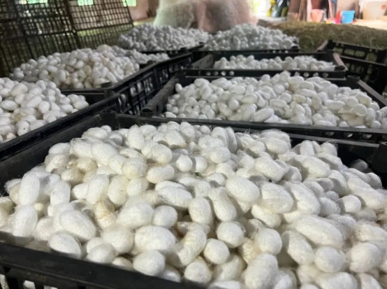 “過去蠶繭要運到縣城收購點,現(xiàn)在收購商直接上門,節(jié)省了運費還能即時結算?!辈堂方榻B道。