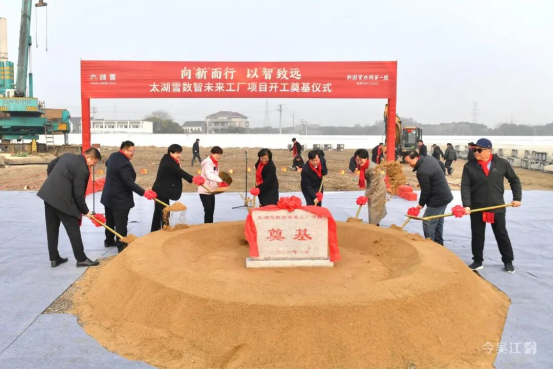 1月6日,總投資約3億元的 太湖雪數(shù)智未來工廠項目在位于震澤鎮(zhèn)的太湖繭絲市場舊址奠基開工。