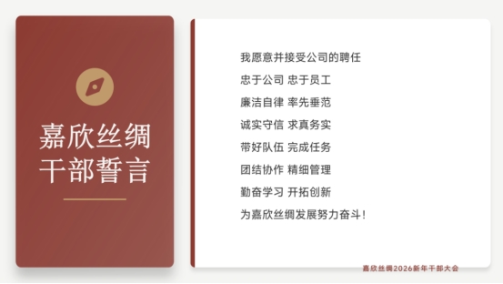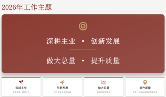 會(huì)上,徐鴻總裁系統(tǒng)宣貫了《2026年嘉欣絲綢工作思路》,明確以“深耕主業(yè)、創(chuàng)新發(fā)展、做大總量、提升質(zhì)量”為工作主題。