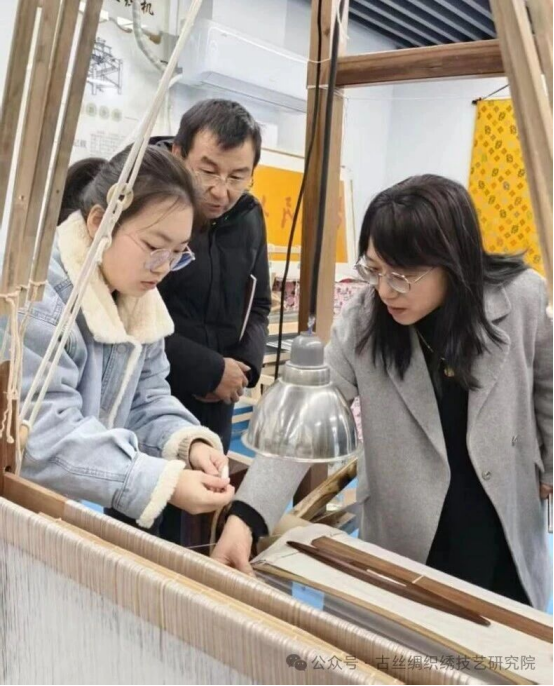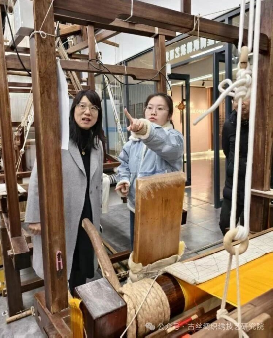 交流環(huán)節(jié)中,王燕教授與丁國(guó)強(qiáng)老師對(duì)研究院在傳統(tǒng)絲綢文化傳承與創(chuàng)新方面的豐碩成果給予高度評(píng)價(jià),他們表示,此次參觀不僅深度領(lǐng)略了中華絲綢文化的深厚底蘊(yùn),更真切看到了年輕一代傳承非遺技藝的飽滿熱情與責(zé)任擔(dān)當(dāng)。大家圍繞“傳統(tǒng)織造技藝與高校藝術(shù)設(shè)計(jì)教育融合路徑”“美育課程中絲綢文化的植入策略”等議題展開深入探討,雙方均期待未來(lái)能搭建長(zhǎng)效合作平臺(tái),推動(dòng)傳統(tǒng)絲綢文化在新時(shí)代煥發(fā)蓬勃生機(jī)。