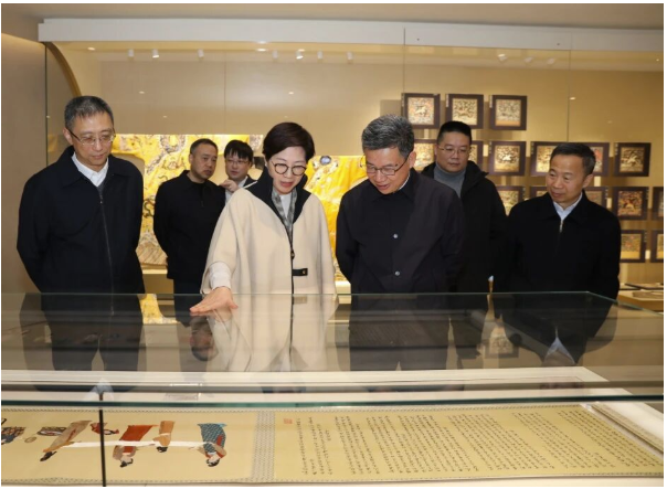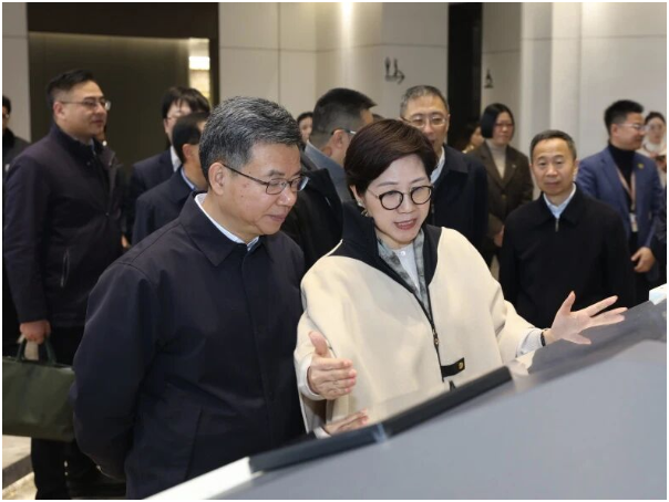 在萬事利科創(chuàng)中心,暨軍民重點考察了企業(yè)以科技創(chuàng)新賦能傳統(tǒng)絲綢產(chǎn)業(yè)的最新成果,詳細(xì)了解AI花型設(shè)計大模型、無水印花一體機(jī)等絲綢產(chǎn)業(yè)新質(zhì)生產(chǎn)力的發(fā)展情況。