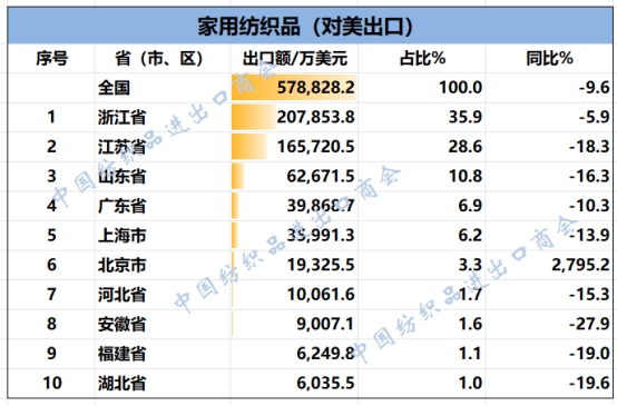 2025年1-11月我國(guó)紡織服裝重點(diǎn)省市對(duì)美出口概況