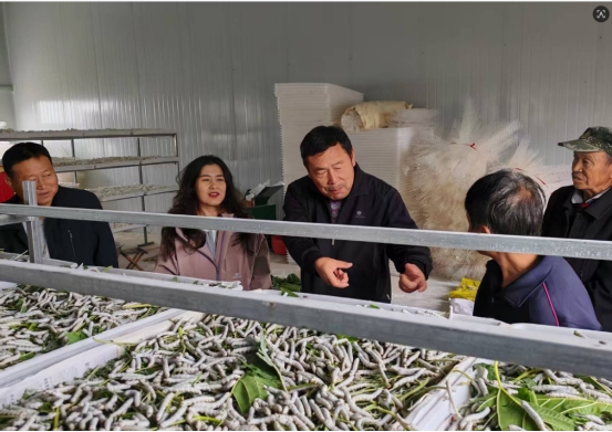 經(jīng)鎮(zhèn)黨委和縣畜牧中心積極協(xié)調(diào),2名江蘇省桑蠶養(yǎng)殖專家駐村開展免費教學(xué),通過“手把手”指導(dǎo)開展技術(shù)培訓(xùn)12場,發(fā)放技術(shù)手冊51份。從土地整理、桑苗栽植,到打藥防蟲、科學(xué)施肥,養(yǎng)殖全流程都有專家現(xiàn)場指導(dǎo),讓農(nóng)戶學(xué)得會、用得上。黑色地布為桑苗穿上“保濕衣”,精準農(nóng)藥筑起“防護甲”,優(yōu)質(zhì)肥料送上“營養(yǎng)餐”,科學(xué)管護讓桑苗長勢喜人。“技術(shù)送到地頭,難題解決在田間,咱們心里踏實!”馮志強感慨道,正是這些全方位的技術(shù)服務(wù),讓他這樣的養(yǎng)蠶新手初次養(yǎng)殖便大獲成功。