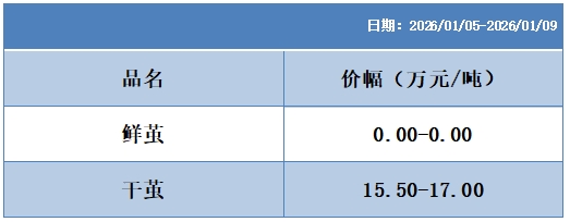根據(jù)本周蠶繭報價按照指數(shù)方案形成的基準(zhǔn)品價格區(qū)間