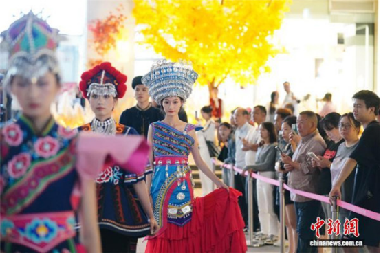 2024年9月29日晚,“彝彩霓裳·尚秀風(fēng)華”快閃活動(dòng)在昆明舉行,向民眾展示楚雄彝繡服飾的獨(dú)特魅力