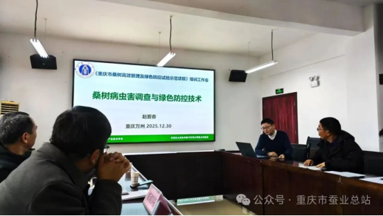 12月29-30日,重慶市蠶業(yè)總站在萬州區(qū)組織召開桑園高效管理與綠色防控試驗(yàn)示范項(xiàng)目培訓(xùn)工作會(huì)。西南大學(xué)、重慶三峽農(nóng)科院、渝東南農(nóng)科院、黔江區(qū)蠶業(yè)管理總站四個(gè)測報(bào)點(diǎn)及市蠶業(yè)總站項(xiàng)目組成員共20余人參會(huì)。重慶市商務(wù)委三級調(diào)研員袁徐宏出席會(huì)議并作指導(dǎo)講話。會(huì)議由重慶市蠶業(yè)總站副站長余華獻(xiàn)高級農(nóng)藝師主持。