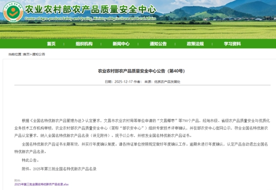 農(nóng)業(yè)農(nóng)村部農(nóng)產(chǎn)品質(zhì)量安全中心官網(wǎng)截圖