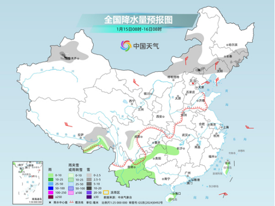 明天,新疆北部和南疆西部山區(qū)、內(nèi)蒙古中部、黑龍江中北部、川西高原北部等地部分地區(qū)有小到中雪或雨夾雪,其中,伊犁河谷山區(qū)和南疆西部山區(qū)等地部分地區(qū)有大到暴雪;湖北南部、江南中西部、重慶中部、貴州、云南中南部、廣西中西部等地部分地區(qū)有小到中雨,局地有大雨。