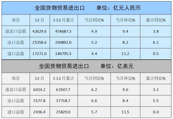 12月單月,按美元計價的紡織服裝出口259.9億美元,同比下降7.4%、環(huán)比增長8.9%。其中,紡織品出口125.8億美元,同比下降4.2%、環(huán)比增長2.5%;服裝出口134.1億美元,同比下降10.2%、環(huán)比增長15.7%,與人民幣計價口徑一致,服裝出口環(huán)比反彈力度更強。