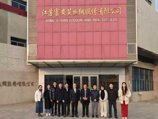 2025年2月27日至28日,張主席一行考察聯(lián)盟成員江蘇富安繭絲綢與鑫緣繭絲綢集團。參觀富安蠶?;?、繅絲車間及文化館,了解 “公司+蠶業(yè)合作社+基地+農(nóng)戶”“二次分配”等“富安模式”及“春蠶24天飼養(yǎng)法”等創(chuàng)新技術(shù),肯定企業(yè)在產(chǎn)業(yè)升級、帶動蠶農(nóng)增收的成效,邀請加入聯(lián)盟并得到積極回應(yīng);在鑫緣實地考察規(guī)?;壗z、自動化織造生產(chǎn)線及智能化工廠化經(jīng)濟型飼料養(yǎng)蠶流程,了解企業(yè)多元化產(chǎn)品布局,希望通過聯(lián)盟平臺加強國際交流。