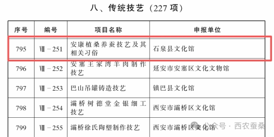 行業(yè)新聞丨安康植桑養(yǎng)蠶技藝及其相關(guān)習(xí)俗入選陜西省第八批非物質(zhì)文化遺產(chǎn)代表性項目名錄