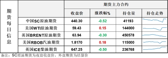 【1】WTI主力原油期貨因馬丁路德金紀(jì)念日提前休市收漲0.09美元,漲幅0.15%,報(bào)59.43美元/桶;布倫特主力原油期貨收跌0.19美元,跌幅0.3%,報(bào)63.94美元/桶;INE原油期貨收跌0.52%,報(bào)440.3元。