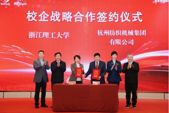 論壇現(xiàn)場(chǎng)舉行了浙江理工大學(xué)與杭州紡織機(jī)械集團(tuán)有限公司的戰(zhàn)略合作簽約儀式