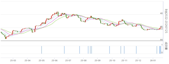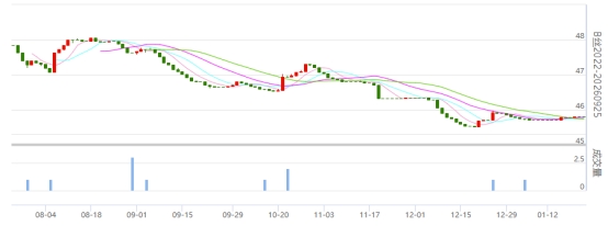今日(2026年1月22日,周四)中國繭絲綢交易市場生絲電子指數報平收于4592.16點。B絲2022D(商檢4A級生絲):260125合約報平,收于45.99萬元;260325合約報平,收于46.32萬元;260925合約報平,收于45.81萬元。