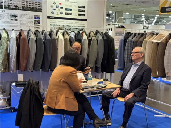 當?shù)貢r間1月20日下午,中華人民共和國駐紐約總領(lǐng)館負責經(jīng)商事務的參贊張帆一行人參觀展會,并現(xiàn)場調(diào)研安徽凡思澈、江蘇億木紡織、上海凌至服飾、浙江彩蝶等中國紡織服裝企業(yè)。