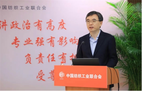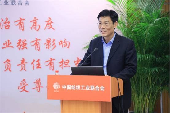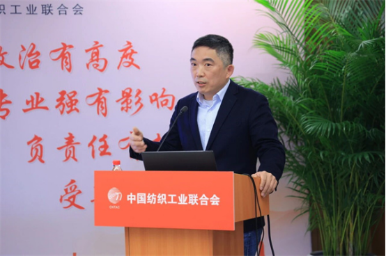 中國紡聯(lián)科技發(fā)展部主任張傳雄作主題為“科技創(chuàng)新賦能紡織健康產(chǎn)業(yè)發(fā)展”的專題分享。