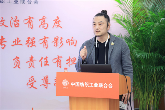 中國紡聯(lián)信息化部副處長于嘉男作主題為“紡織行業(yè)數(shù)字化與人工智能融合應(yīng)用”的專題分享。