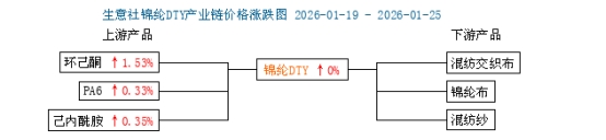 成本方面:上周(2026年1月19日至25日),原料己內(nèi)酰胺價格趨于平穩(wěn),成本端支撐一般,錦綸PA6切片市場走勢維穩(wěn),成本端支撐有限,截止2026年1月25日,生意社己內(nèi)酰胺基準(zhǔn)價為9500元/噸,價格小幅上漲,周漲幅0.35%,對錦綸絲價格支撐有限。