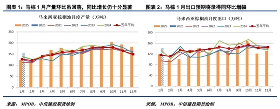 此外,馬棕較好的產(chǎn)量表現(xiàn)及仍處于高位的庫(kù)存,亦對(duì)BMD毛棕櫚油漲勢(shì)帶來(lái)制約。MPOA預(yù)計(jì)馬棕1-20日產(chǎn)量較上月同期減少14.43%,SPP(7664, -18.00, -0.23%)OMA預(yù)計(jì)馬棕1-25日產(chǎn)量較上月同期減少14.81%,按照1月產(chǎn)量環(huán)比降15%左右測(cè)算,馬棕1月產(chǎn)量同比增幅高達(dá)25.44%,且156萬(wàn)噸左右的產(chǎn)量仍處于歷史同期較高水平。近期棕櫚油價(jià)格的快速反彈確實(shí)刺激了需求國(guó)補(bǔ)庫(kù),但在印尼3月提稅前搶出口的背景下,馬棕1月出口增長(zhǎng)并沒(méi)有那么顯著。船運(yùn)調(diào)查機(jī)構(gòu)ITS及AmsSpec預(yù)計(jì)馬棕1月1-25日出口較上月同期增7.97%-9.97%,若機(jī)構(gòu)預(yù)估與最終出口增幅偏差不大,則馬棕1月出口將落在140萬(wàn)噸左右。在產(chǎn)量環(huán)比下降及出口環(huán)比增長(zhǎng)的情況下,馬棕1月末庫(kù)存可能環(huán)比降20萬(wàn)噸至285萬(wàn)噸左右,雖有邊際改善卻仍處于同期高位。