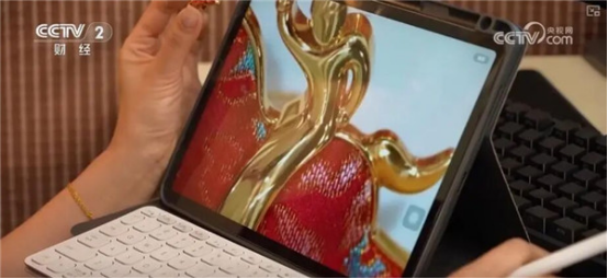企業(yè)負(fù)責(zé)人張國權(quán)介紹,結(jié)合真絲、金銀絲等各種素材,把它組合在一起。這一款是“馬到成功”,還有“龍馬精神”“一馬當(dāng)先”。團(tuán)隊設(shè)計出來之后,他們經(jīng)過配色,體現(xiàn)在綢面上,給客戶一個豐富的多彩世界。