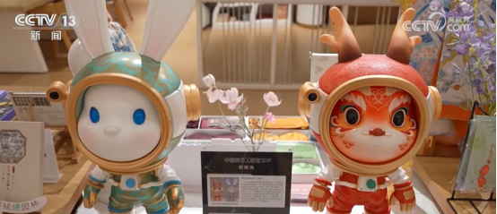 蘇州絲綢博物館館長(zhǎng) 錢兆悅:像這一款絲巾的紋樣都來(lái)自于數(shù)據(jù)庫(kù)里的那件朱紅色傳統(tǒng)的女服上的這些紋樣。這個(gè)是中國(guó)探月工程的官方IP兔星星,外面身穿的宇航服上面,就是來(lái)自于我們館藏明代的四合如意云紋,云紋和航天、太空有著很密切的關(guān)系,也象征著我們中國(guó)文化和中國(guó)科技的兩種力量融合。