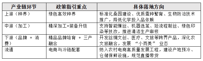 1. 政策定位:將繭絲綢納入縣域富民產(chǎn)業(yè)與農(nóng)業(yè)現(xiàn)代化重點賽道