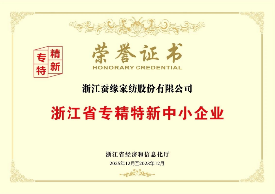 “專精特新”聚焦專業(yè)化、精細化、特色化、創(chuàng)新能力四大維度,遴選細分領(lǐng)域優(yōu)質(zhì)企業(yè)。此次入選,彰顯了蠶緣家紡在蠶絲家紡領(lǐng)域的硬核實力與行業(yè)標桿地位。
