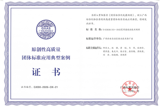 《菜用桑栽培技術規(guī)程》榮獲廣西標準化協(xié)會原創(chuàng)性高質量團體標準應用典型案例