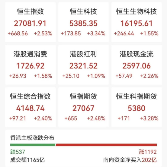 港股漲幅居前的板塊:有色金屬、消費(fèi)、汽車、半導(dǎo)體、耐用消費(fèi)品、紡織服裝、房地產(chǎn)等。