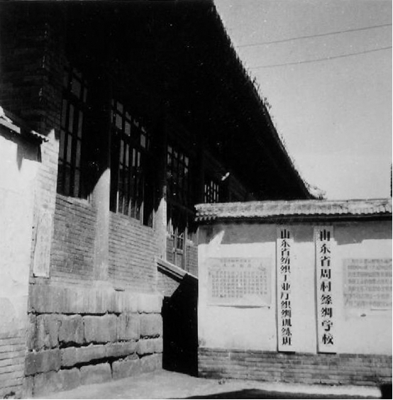 1960年6月,山東周村絲綢學(xué)校初建時(shí),在山東省織綢訓(xùn)練班教室前掛牌