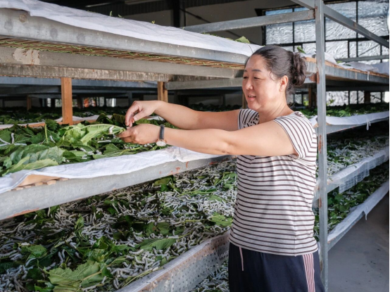 產(chǎn)業(yè)鏈越拉越長(zhǎng),最受益的就是當(dāng)?shù)匦Q農(nóng)。“去年春蠶養(yǎng)了十盒,賣(mài)了3萬(wàn)多;夏蠶養(yǎng)了六盒,又收入2萬(wàn)多,這比以前種莊稼強(qiáng)多了。”石羊鎮(zhèn)柳樹(shù)塘村的蠶農(nóng)王瑩,說(shuō)起養(yǎng)蠶的收入,臉上滿(mǎn)是笑容。同村的林子學(xué)更是開(kāi)心:“以前蠶沙都是扔了,現(xiàn)在能賣(mài)錢(qián)了!我家六盒蠶的蠶沙,就賣(mài)了2500元,養(yǎng)蠶更有奔頭了。”