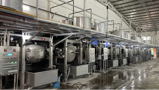 廣西恒業(yè)絲綢集團有限公司是一家集鮮繭收烘銷售、白廠絲、坯綢及蠶絲被生產(chǎn)銷售為一體的繭絲綢綜合型國家級龍頭企業(yè)。旗下?lián)碛?家控股子公司,有自動繅絲機142組,年產(chǎn)白廠絲3500噸,產(chǎn)品暢銷國內(nèi)外,并在國際市場樹立起中國絲綢的優(yōu)質(zhì)口碑。為了提質(zhì)降耗、增加企業(yè)效益,恒業(yè)集團在2025年初進(jìn)行了2臺減壓自動煮繭機技改,通過不同地區(qū)、繭季的原料在不同車間實繅生產(chǎn)對比測試,提質(zhì)增效顯著,全面驗證了新技術(shù)及設(shè)備卓越性能。為此集團做出了全面應(yīng)用減壓自動煮繭機的決策,裝機總數(shù)約40臺,目前14臺已投產(chǎn),預(yù)計2026年底全部安裝運行。