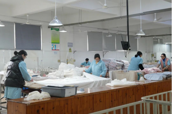 新春開工首日,太湖雪絲綢股份有限公司生產(chǎn)車間內(nèi)已是一片繁忙景象,工人們精神飽滿、加足馬力趕制訂單。本地員工到崗率達100%,其余員工也將于2月26日全部返崗,全面吹響復工復產(chǎn)號角。