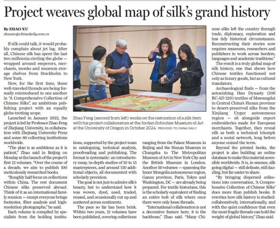 2025年12月25日,《中國日報》頭版刊登 Project weaves global map of silk's grand history,《“中國絲綢藝術(shù)大系”項目編織絲綢宏大歷史的全球地圖》報道;