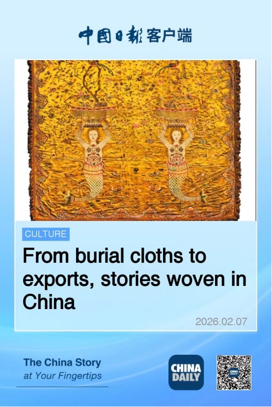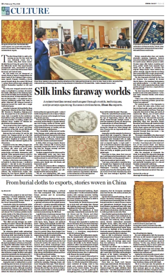 2026年2月7日,《中國日報》第十版刊登 Silk links faraway worlds,《絲綢鏈接起遙遠的世界》以及 From burial cloths to exports,stories woven in China《從隨葬品到外銷綢:絲綢編織中國故事》兩篇專文報道。