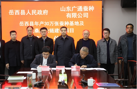 2月28日,安徽省岳西縣年產(chǎn)30萬張蠶種基地及蠶桑產(chǎn)業(yè)鏈建設項目舉行簽約儀式??h長桂穩(wěn)成、山東廣通蠶種集團董事長連海剛出席簽約儀式,副縣長王金橋參加。