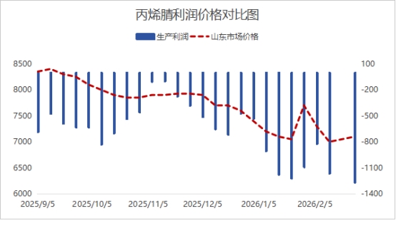 自去年四季度以來(lái),國(guó)內(nèi)丙烯腈生產(chǎn)虧損空間逐步擴(kuò)大至1000元/噸以上,且進(jìn)入2026年并無(wú)改善跡象。此輪價(jià)格觸底反彈之前,丙烯腈價(jià)格已然再度跌至歷史低位7000元/噸偏下。而隨著虧損時(shí)間延長(zhǎng),春節(jié)過(guò)后部分工廠釋放停車或檢修計(jì)劃,包括撫順石化已然停車,中海油富島計(jì)劃3月底停車檢修25天左右,科魯爾4-6月份停車大修,以及目前斯?fàn)柊畹却髲S仍維持低負(fù)荷運(yùn)行。而由于節(jié)后需求處于復(fù)蘇階段,因此供應(yīng)縮量疊加成本壓力加大對(duì)市場(chǎng)支撐尤為明顯。