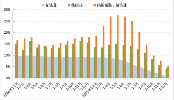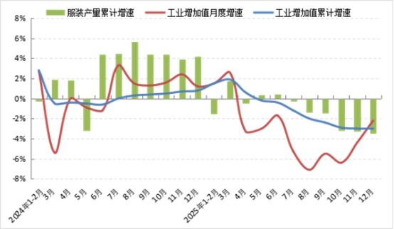 圖1:2025年1-12月服裝行業(yè)生產(chǎn)增速情況